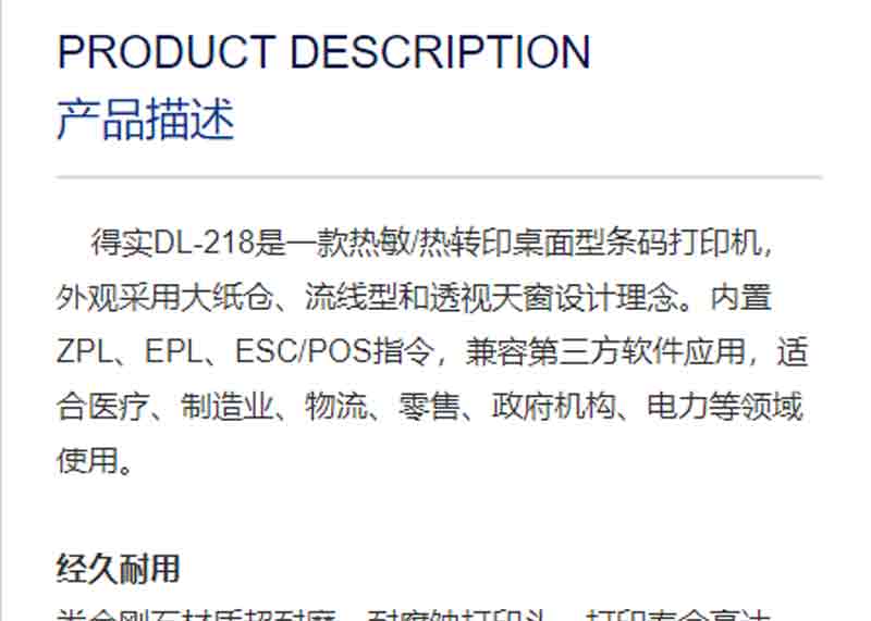 商品名稱  :   得實(Dascom)DL-218桌面型條碼打印機(jī)