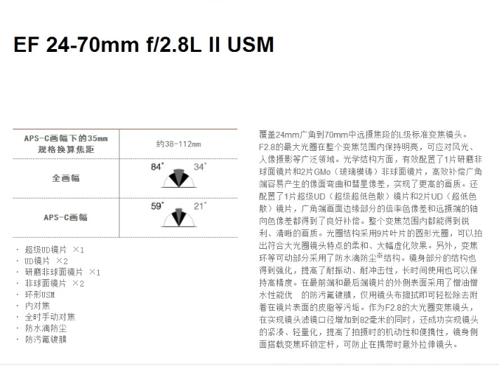 商品名稱  :   佳能(Canon)EF 24-70mm f/2.8L II USM全畫幅標(biāo)準(zhǔn)變焦鏡頭