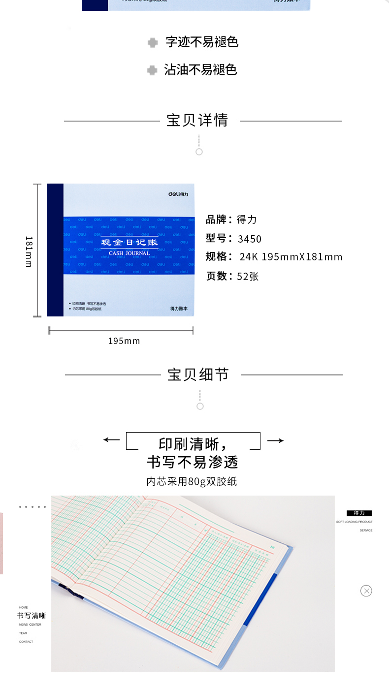 商品名稱  :   得力(deli) 單據(jù)/憑證 3450現(xiàn)金日記帳