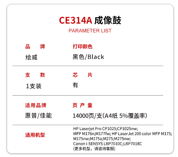 產(chǎn)品名稱  :   卓普CE314A成像鼓 通用硒鼓/粉盒