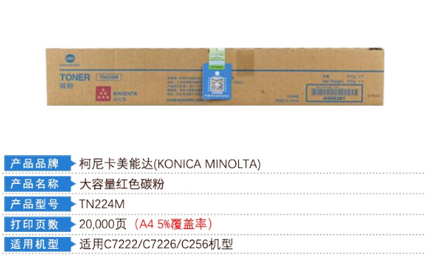 商品名稱  :   柯尼卡美能達(dá) 通用硒鼓、粉盒 TN224M 紅色高容墨粉
